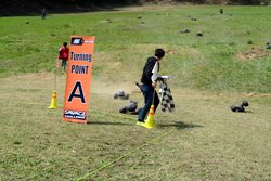 Áö³­ 20ÀÏ ¾çÆò¿¡ À§Ä¡ÇÑ ÇÑÈ­¸®Á¶Æ®¿¡¼­ °³ÃÖµÈ ¡°2014 HPI Savage Challege¡± µÎ ¹øÂ° Á¾¸ñÀ¸·Î Ä¡·ç¾îÁø Drag °æ±â¿¡ ÃâÀüÇÑ Â÷·®µéÀÌ ¹ÝȯÁ¡À» µ¹¾Æ¼­ ÁöÁ¤ Àå¼Ò·Î µé¾î¿À°í ÀÖ´Ù. °ñÀÎ ÁöÁ¡À» ÇâÇØ ÁúÁÖÇÏ´Â Savage Â÷·®À» ÇÇÇØ ±è±âÈï ´ë¸®°¡ ±ÞÈ÷ ÀÚ¸®¸¦ ¿Å±â°í ÀÖ´Ù.